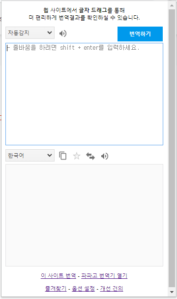 파파고의 경우 아이콘을 클릭하면 다음의 창이 활성화 됩니다.