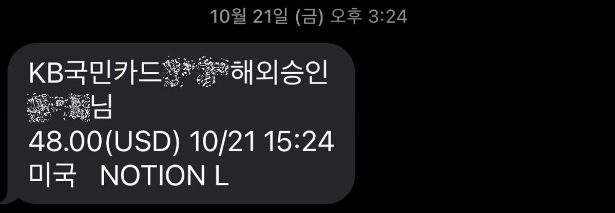 매우 유익하게 활용했었는데, 2022년에는 담당하는 일이 바뀌어서 노션은 지극히 개인적인 메모장 정도의 용도로 사용하게 되었습니다. 자동 결제는 잊고 있었지요.