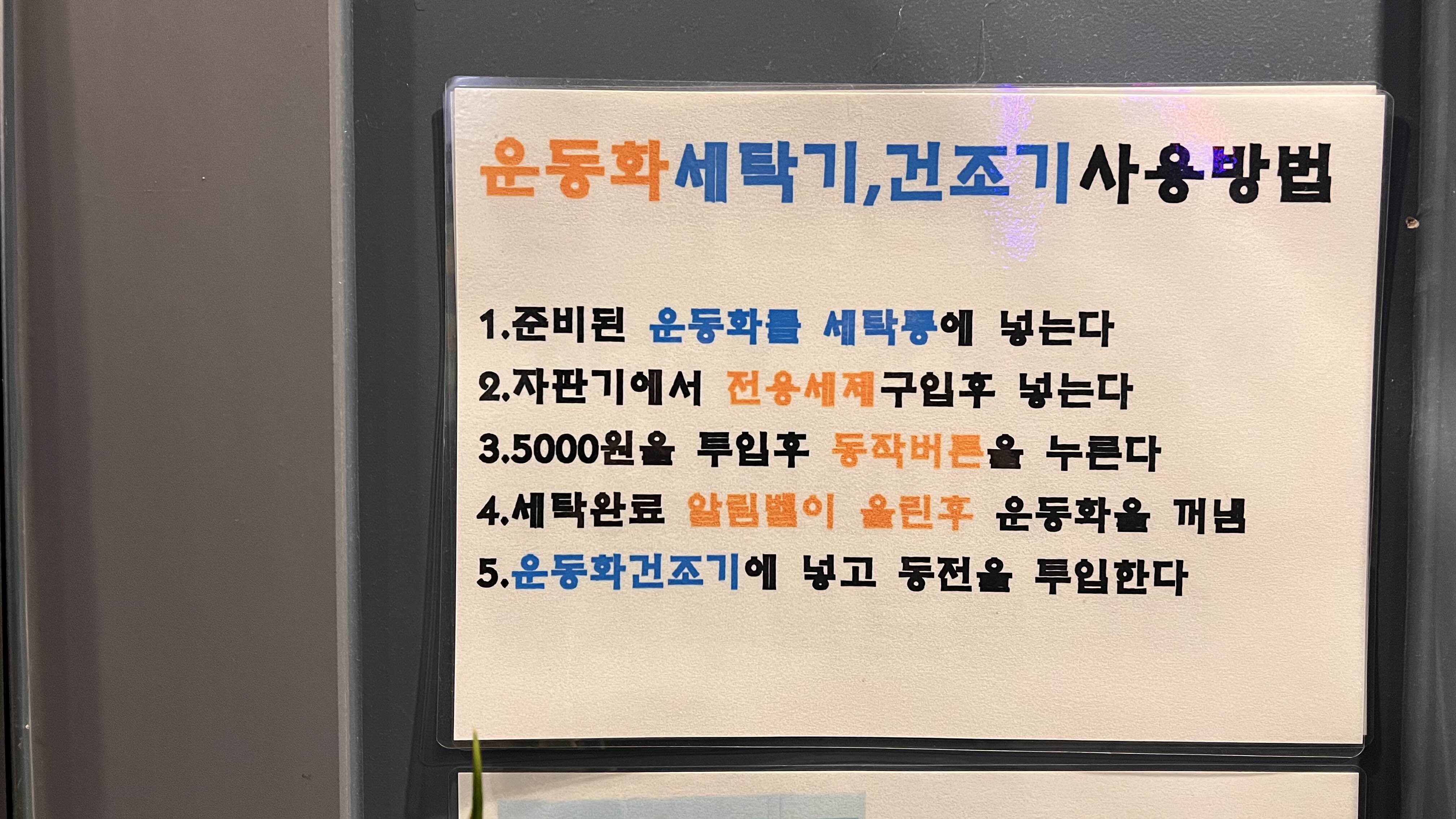 카드는 2000원을 주고 구입해야 하고, 여기에 충전하여 사용하는 방식이더라고요. 세탁기와 건조기에 현금을 넣어서 사용도 가능하지만, 일회성으로 빨래방을 이용하신다면 500원 동전을 이용해서 사용하면 되고, 자주 사용할 예정이라면 카드를 충전해서 사용하는 것도 좋은 방법 같아요.(운동화는 카드 사용이 되지 않고 현금만 사용 가능하네요?)