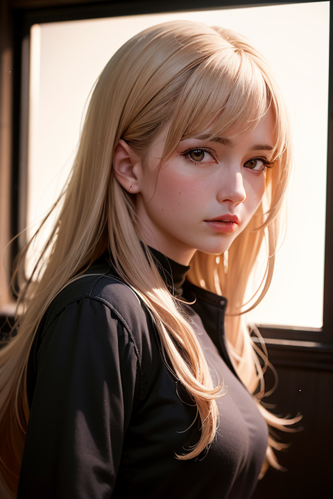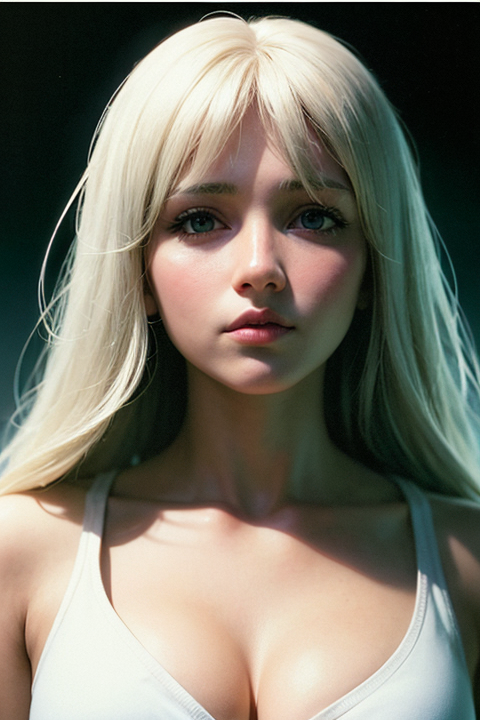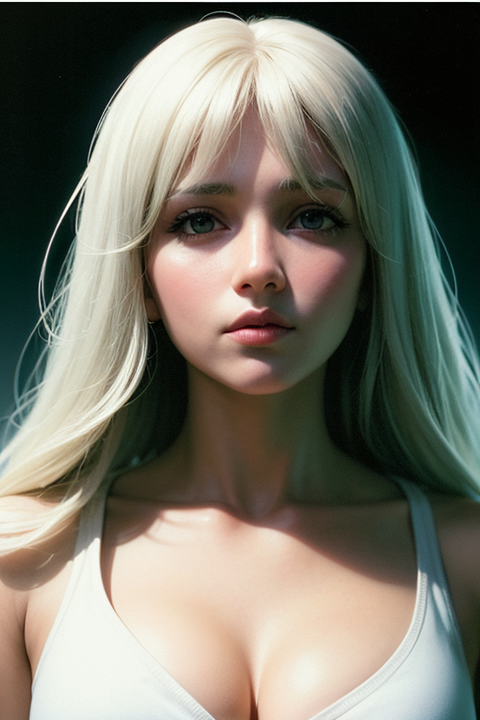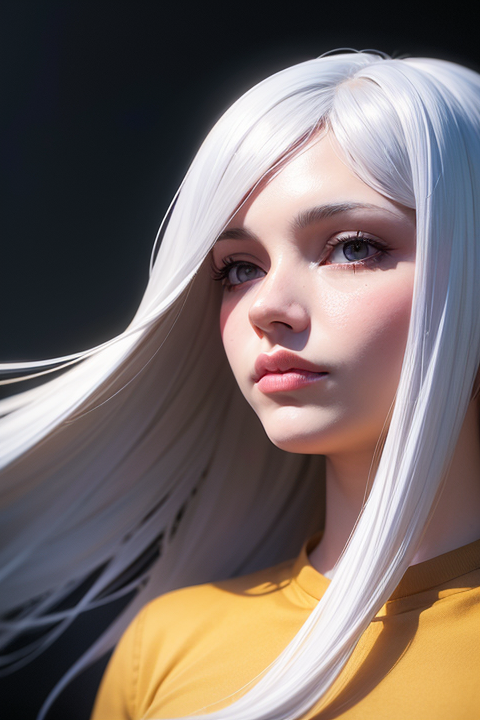 (앞쪽 초점), (어둠 속:1.6), 데이비드 호크니와 알폰소무차의 초현실주의 여성 초상화, 판타지 아트, 포토리얼리티, 다이내믹 조명, 아트스테이션, 포스터, 볼륨 조명, 매우 세밀한 얼굴, 4k, 수상, 1girl, 어두운 속, 깊은 그림자 속, 낮은 키, 카우보이 샷, 긴 머리, 흰머리,
