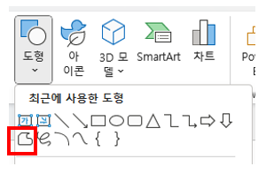 그리고, 삼각형의 도형을 위에 그려주세요. 가능하면 대각선을 맞추는 게 좋은데, 이미지 느낌에 따라서 맞지 않아도 감각적인 경우가 있더라고요. 정확하게 맞추려면 아래 이미지에서 붉은색으로 표시한 도형을 선택하면 더 쉽게 그릴 수 있습니다.
