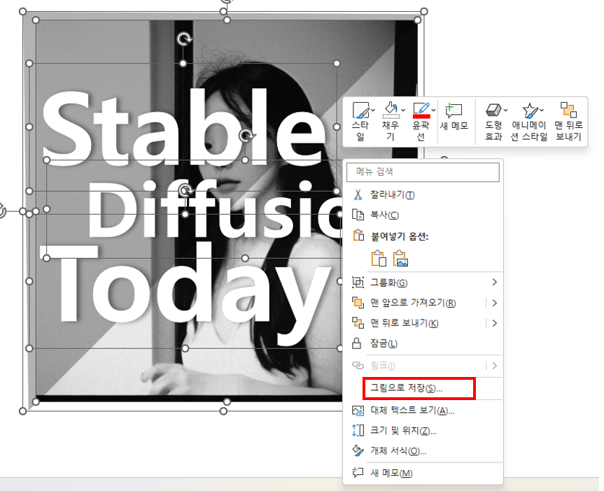 만약, 이미지만 저장하겠다면, 파워포인트에서 이미지, 도형, 글씨를 모두 마우스로 드래그 하세요.