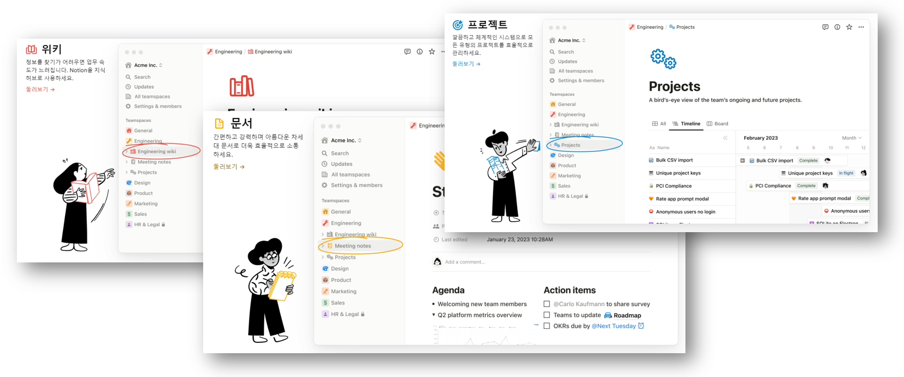 노션은 사용자의 역량에 따라서 문서작업, 프로젝트 진행, 조직에서의 위키와 같이 다양한 방법으로 활용할 수 있다는 장점이 있습니다. PC와 스마트기기의 연동이 편리하다는 장점도 있고요, 태그 형식으로 데이터를 관리할 수 있다는 장점도 있습니다.