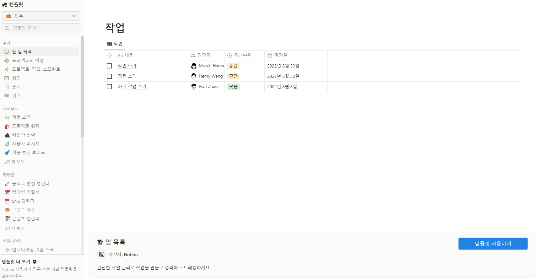 노션에서는 다양한 템플릿을 제공하고 있습니다.