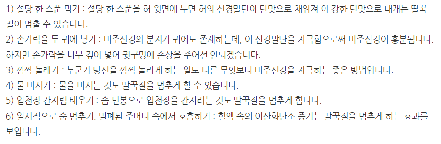 그나저나 딸꾹질 하면 참 불편한데, 이런 글 찾을 일이라도 없으면 좋겠습니다. 혹여, 찾게 된다면 꼭 멈추기를 응원하고요. 긴 글 읽어주셔서 감사합니다.