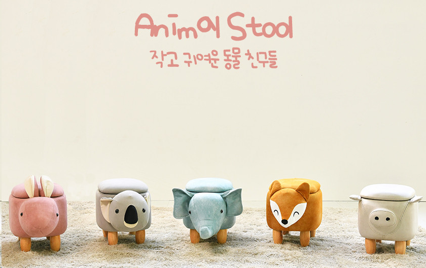 최고급 수납 동물 스툴 소파 보조 인테리어 카페 화장대 원목 어린이 의자 : 가구맛집