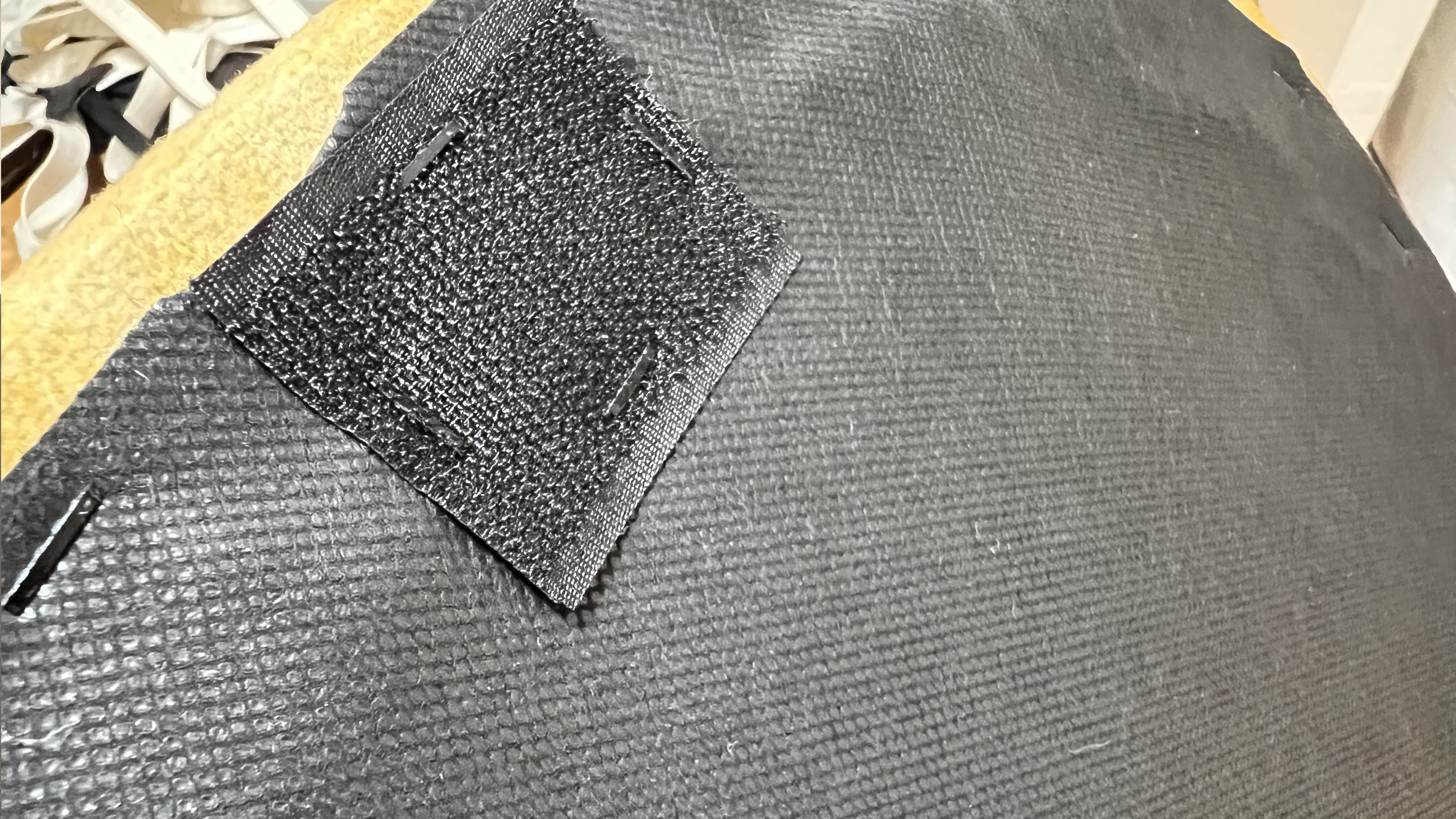 비슷한 맥락인데요. 여우의 등을 열면 수납공간이 있어요. 이 부분에 고정의 목적으로 부직포가 있는데, 부직포도 타카로 고정되어 있더라고요. 그런데 사진처럼 모서리 부분이 떠있어서 역시나 마감이 아쉽다는 생각이 들었어요.