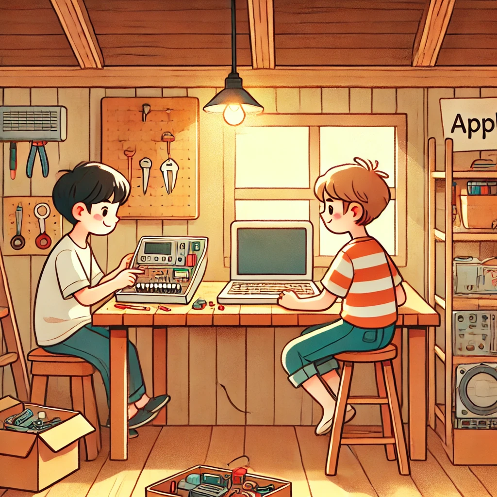 1976년, **스티브 잡스와 그의 친구 스티브 워즈니악(Steve Wozniak)**은 부모님의 차고에서 애플을 창업했다.