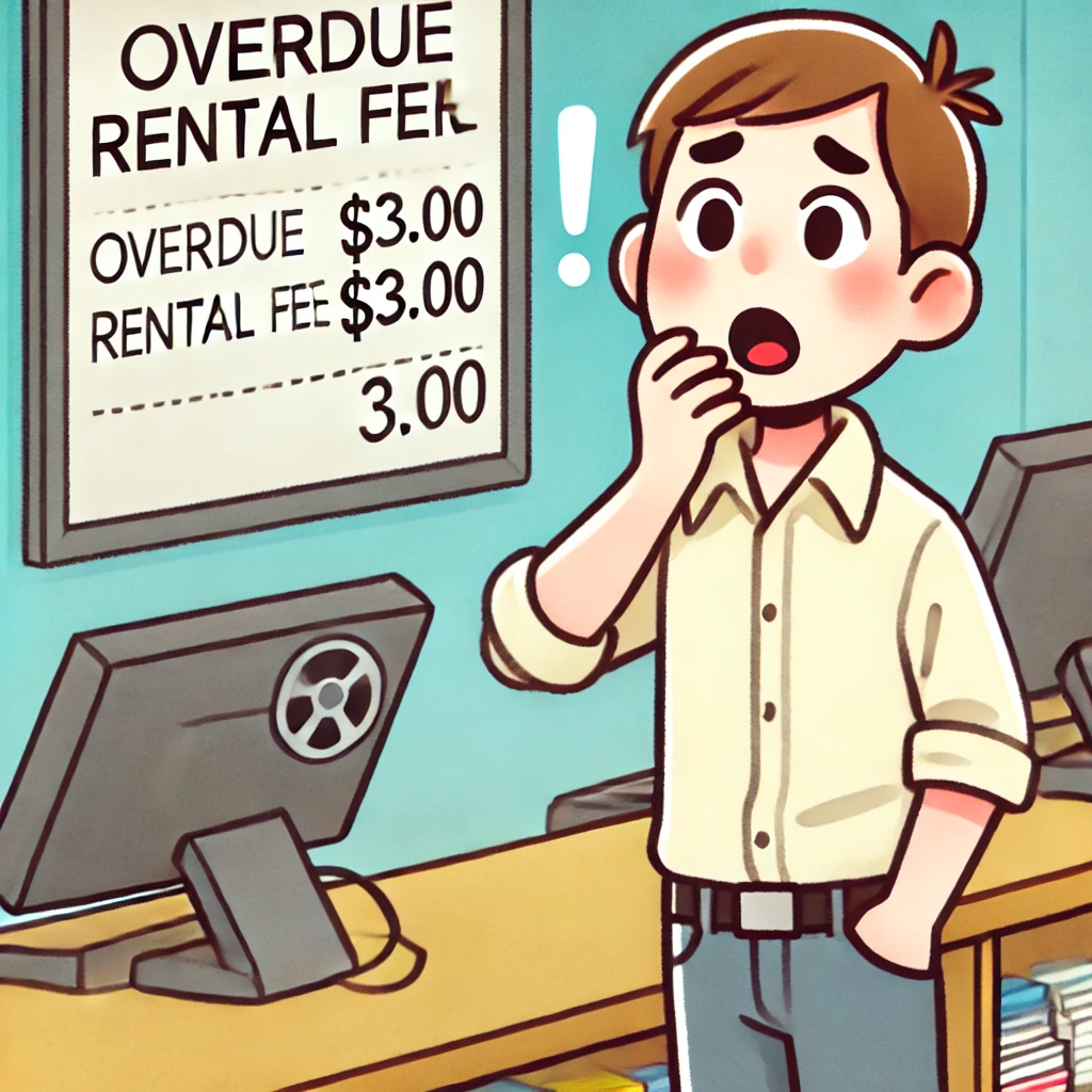✔ 그는 블록버스터에서 DVD를 빌렸다가 반납을 깜빡하고 40달러 연체료를 물었다.