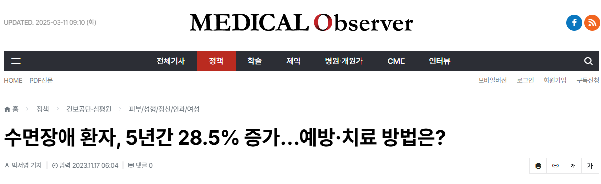 최근 들었던 라디오에서도 수면 장애 관련 이야기를 다루는것을 듣고는, 수면 질환 문제를 경험하는 사람이 많다는 것을 깨닫게 되었어요.